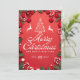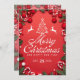 Red Christmas Card with Tree and Reindeer Festivity