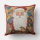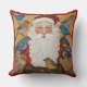 Cute, whimsical Santa surrounded by little sparrows and birds. Wonderful vintage accent pillow for the Christmas holiday season.