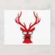 Red Christmas deer with moustache and nerd glasses Holiday Postcard