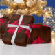 Beautiful red Christmas flower on brown background on wrapping paper. You must know that you get a photo!
