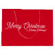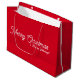 A red christmas gift bag with "Christmas red" colour. It wishes merry Christmas and happy holidays.