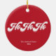 Red Christmas Ho Ho Ho tree ornament with white changeable text - you can change family name and year.