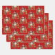 Red Christmas Lantern Poinsettia and Pine Pattern Wrapping Paper Sheet