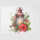 Tissue paper with a cosy Christmas image featuring a red lantern surrounded by pine and a poinsettia and holly.