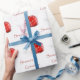 A Digitalbcon Images Design featuring a two-tone red and white colour theme in a diagonal design with a variety of custom images, shapes, patterns, styles and fonts in this one-of-a-kind Red Christmas Ornament "Season's Greetings" Wrapping Paper. Add a special touch to your Season's Greetings this year with this elegant and attractive gift wrapping paper.