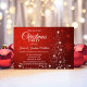 Personalised Modern Christmas Party invitations in red and white colours. Background in twinkle lights and snow, snowflakes and Christmas tree. Editable template - simply add your text. All text can be changed font, colour and size. Perfect for home party, office party, holiday dinner party bash or any other winter season occasion.