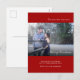 Cute Photo Pregnancy Announcement Postcard perfect for Christmas in a modern red design.