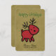 A business themed Happy Holidays greeting card. Designed with a red Christmas reindeer illustration. Festive and cute. The background is a digital image of brown kraft paper, not actual kraft paper.