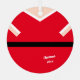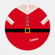 Red Santa elf suit, trimmed in black and white... showcases your loved one's name. On the back is the wording, "Christmas 20xx" in white.