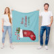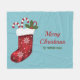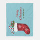 Red Christmas Stocking On Blue With Custom Text Fleece Blanket