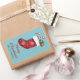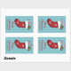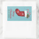 Red Christmas Stocking On Blue With Custom Text Rectangular Sticker