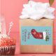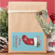 Destei's original illustration of a festive red Christmas stocking that has two candy canes coming out of it. The background colour is blue. There are also two personalizable text areas.