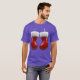 I give wanted to give this a 4 instead of a 5 because these Basic DARK T0shirts run unexpectedly SLIM or Narrow. Which is great if you do not have a potbelly, but I have a paunch. It isn't the shirt's fault that I've got a beer belly. The design and shirt itself is a quality cotton shirt. The color is more of a deep purple, but still a very pretty color. The Basic DARK T-shirts run a bit SLIMMER than the Basic Ts. The neck is a fraction narrower (or seems to be narrower) also. I'm a paunchy middle-aged woman and my neck is 12 inches (31cm) thick and the neckline fell about the same as in the photo of the man, and I had the desire to tug it a bit. So if you're a thick necked man or like loose shirts, be aware these are slimmer shirts. Once I get rid of my lockdown paunch it'll look great. The shirt washed well in cold water with no apparent bleeding. We don't have a dryer, so it hung dry. Did not shrink. Love the colors and the design. The design looks smaller on my shirt than it does on the model on-line. But still, it looks good on the shirt. The printing looks as it does on the model, just the size seems fractionally smaller. Washed garment in cold water, hung dry and design appeared unaffected.
