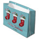 Red Christmas Stockings On Blue With Custom Text Large Gift Bag