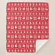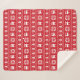 Sherpa blanket with red christmas sweater inspired pattern with reindeers, poinsettias and christmas trees.