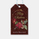 Dark Red Gift tag with poinsettia wreath and gold sparkle accents