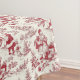 Red Christmas Toile Santa And Trees Patterned Tablecloth. Classic French Toile design for the festive season. Beautiful red detailing with winter tree scenery. Perfect for the Christmas dinner table and winter dining through the festive season.