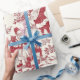 Red Christmas Toile Santa And Trees Wrapping Paper