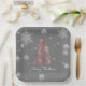 Elevate your holiday gatherings with this Red Christmas Tree and Snowflakes Paper Plates, a stylish addition to your festive table. These sturdy plates feature a festive design with a radiant Christmas tree and white snowflakes, accented by fancy flourishes and falling snow against a sophisticated grey background. The elegant script displaying "Merry Christmas" adds a touch of holiday cheer. Perfect for serving treats, these plates combine functionality and charm to enhance your seasonal celebrations with a refined, wintry vibe.