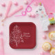 The festive Red Christmas Tree Winter Wedding Paper Plates can be personalised with the names of the bride and groom and date of their December engagement party, bridal shower or marriage ceremony and reception. These elegant custom wintery disposable plates feature an intricate white Christmas tree design with a red background.