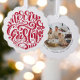 Red Christmas Typography Personalised Photo round ornament card from Ricaso - featuring a wonderful modern scrolled typography to the front, your photograph and text to the back. This ornament card not only makes a wonderful holiday greeting but it can be hung on the tree for years to come.
