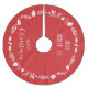 Red Merry Christmas brushed polyester tree skirt with white leaves decoration and changeable text - you can add your family name, printed on red background