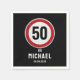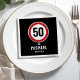 Red circular road sign with CUSTOM AGE birthday Napkin