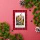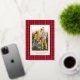 Red Classic Christmas Plaid Three Photo Foil Holiday Card