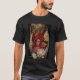 I give wanted to give this a 4 instead of a 5 because these Basic DARK T0shirts run unexpectedly SLIM or Narrow. Which is great if you do not have a potbelly, but I have a paunch. It isn't the shirt's fault that I've got a beer belly. The design and shirt itself is a quality cotton shirt. The color is more of a deep purple, but still a very pretty color. The Basic DARK T-shirts run a bit SLIMMER than the Basic Ts. The neck is a fraction narrower (or seems to be narrower) also. I'm a paunchy middle-aged woman and my neck is 12 inches (31cm) thick and the neckline fell about the same as in the photo of the man, and I had the desire to tug it a bit. So if you're a thick necked man or like loose shirts, be aware these are slimmer shirts. Once I get rid of my lockdown paunch it'll look great. The shirt washed well in cold water with no apparent bleeding. We don't have a dryer, so it hung dry. Did not shrink. Love the colors and the design. The design looks smaller on my shirt than it does on the model on-line. But still, it looks good on the shirt. The printing looks as it does on the model, just the size seems fractionally smaller. Washed garment in cold water, hung dry and design appeared unaffected.