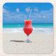 Red Cocktail by the Sea Photo Square Paper Coaster