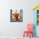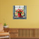 A gorgeous ai watercolor illustration of red poppies in a red tin painted coffee can sitting on a window sill on a summer day.