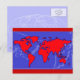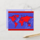 red colour world map postcard