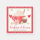 Bring warm and festive charm to your winter celebration with this Cookies & Cocoa themed party napkin in a classic holiday red palette. The design features a whipped-cream topped cocoa mug, cupcake, poinsettia flower, cinnamon stick, star anise, and scattered gold snowflakes — perfect for a cozy, sweet winter birthday party!