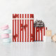 Red and white striped wrapping paper with festive red bows is perfect for holiday gift giving, especially Christmas and winter celebrations. The bold candy cane stripe pattern creates an instantly recognisable seasonal feel, while the repeating watercolor style red bows add a charming and elegant touch. This classic design combines vintage holiday aesthetics with modern print clarity, making it ideal for wrapping Christmas presents, party favours, or festive retail packaging. The vibrant red against crisp white ensures a cheerful and eye-catching presentation under the tree or at holiday events.
