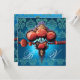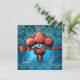 RED CORAL ROSES,AQUA BLUE BLACK DAMASK MONOGRAM INVITATION