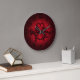 This fun, retro fashion themed clock has an image of a red corset and the phrase "tight laced".