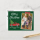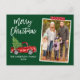 Modern Brush Script Watercolor Vintage Red Truck with Christmas Tree Merry Christmas Family Photo Postcard - Forest Green, Snowflake Red Craft Tape