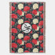 Red & Cream Rose Patterned Monogram Throw Blanket