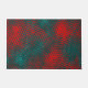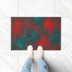 Red crisscrossing scratches over charred cyan doormat