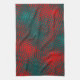 Red crossed scratches on charred cyan or grey sky tea towel