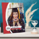 Simple and modern graduation sign features your graduate's favourite senior photo with a double curved frame down one side. Personalise the minimal graduation design with the graduate's name, school, and class year. Available in red, orange, yellow, green, blue, purple, maroon, black and gold. Matching products and other colours available.
