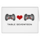 Quirky and totally geeky chic is this Cute Gamer Wedding Table Number Card featuring a pair of video game controllers with red buttons. A heart in the middle connects the two controllers. This nerdy table card is perfect for the gaming couple. Easy to customise, simply add the appropriate table number(s) in the text field provided. Click "Customise It" to find more personalisation options.