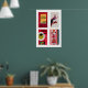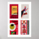 Red Czechoslovak Matchbox Labels Grid Print, Vintage Ephemera Poster, Central Europe Collection, Midcentury Style, crimson wall art 1