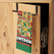 Red Dachshund Dog Countdown Christmas Advent kitchen towel features a watercolor of a red (colour) Dachshund with a Christmas hat and a red scarf. Funny design for Dog Lovers!