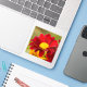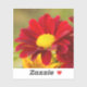 A sticker with a photo of a red daisy, taken from Las Piñas, NCR, Philippines.