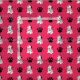 This dalmatian fabric is perfect for those who love this dog breed. The pattern comes in a dot formation with black paw prints and illustrated dalmatians. The background comes in red.
