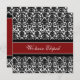 Elopement announcement cards in elegant red, black and white classic floral damask pattern, fully customisable with your names and wedding details, the perfect way to announce your elopement to friends and family. Available in a wide range of matching wedding products.