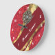PERSONALIZE this chic elegant stylish vintage antique red damask floral swirl pattern and a modern gold swirl design ribbon and faux crystal rhinestone jewel photograph print, with your own text, name or monogram, initials .