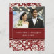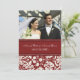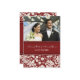 Elopement announcement photo cards in elegant red and cream off white floral damask pattern, fully customisable with your names, wedding photo and wedding details, the perfect way to announce that you have eloped to friends and family. Available in a wide range of matching wedding products.