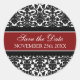 Save the Date envelope seals for wedding, in elegant red, black and white classic floral damask pattern, the perfect addition to your save the date card envelopes, available in many matching wedding products. Contact us for a colour change request.